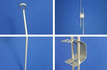 Este clip esta fabricado en acero 1010 con tratamiento térmico y una capa de zinc electrolítio, este tratamiento le da la capacidad de resorteo lo que le permite asegurar la posición del alambre al presionarlo y poder regular la altura con facilidad.